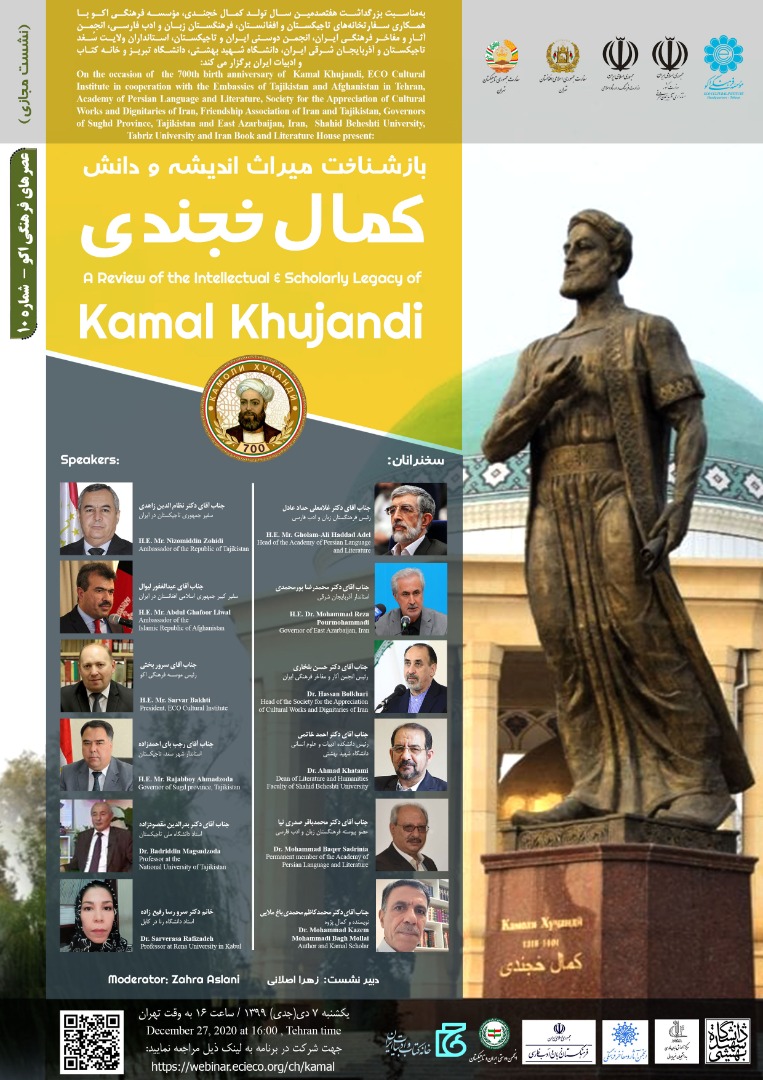 برگزاری نشست بازشناخت میراث اندیشه و دانش کمال خجندی 9086 بازدید print share 07 دی به مناسبت بزرگداشت هفتصدمين سال تولد کمال خجندی، معروف به شیخ کمال از عارفان و شاعران پارسیگوی قرن هشتم هجری،...
